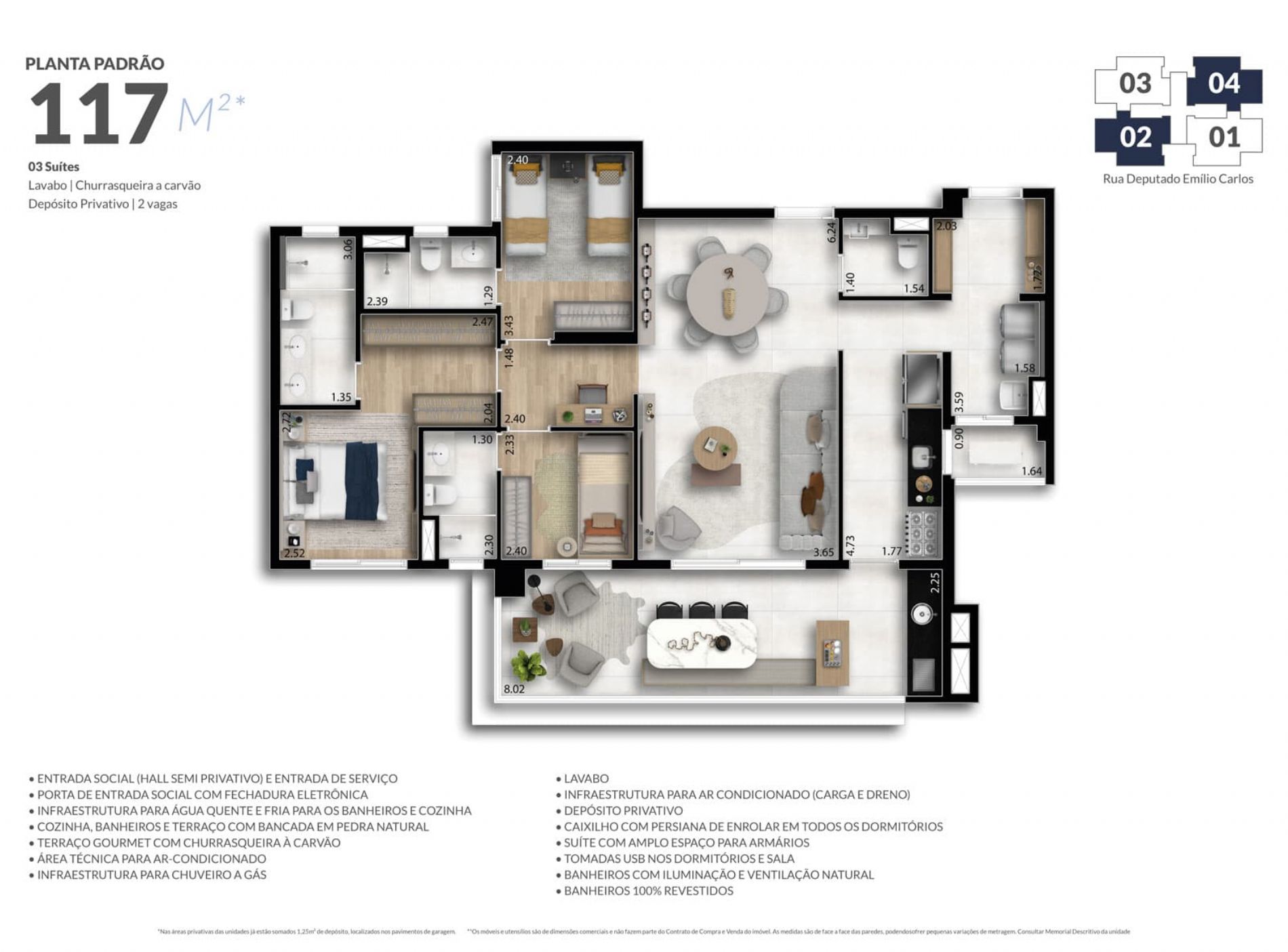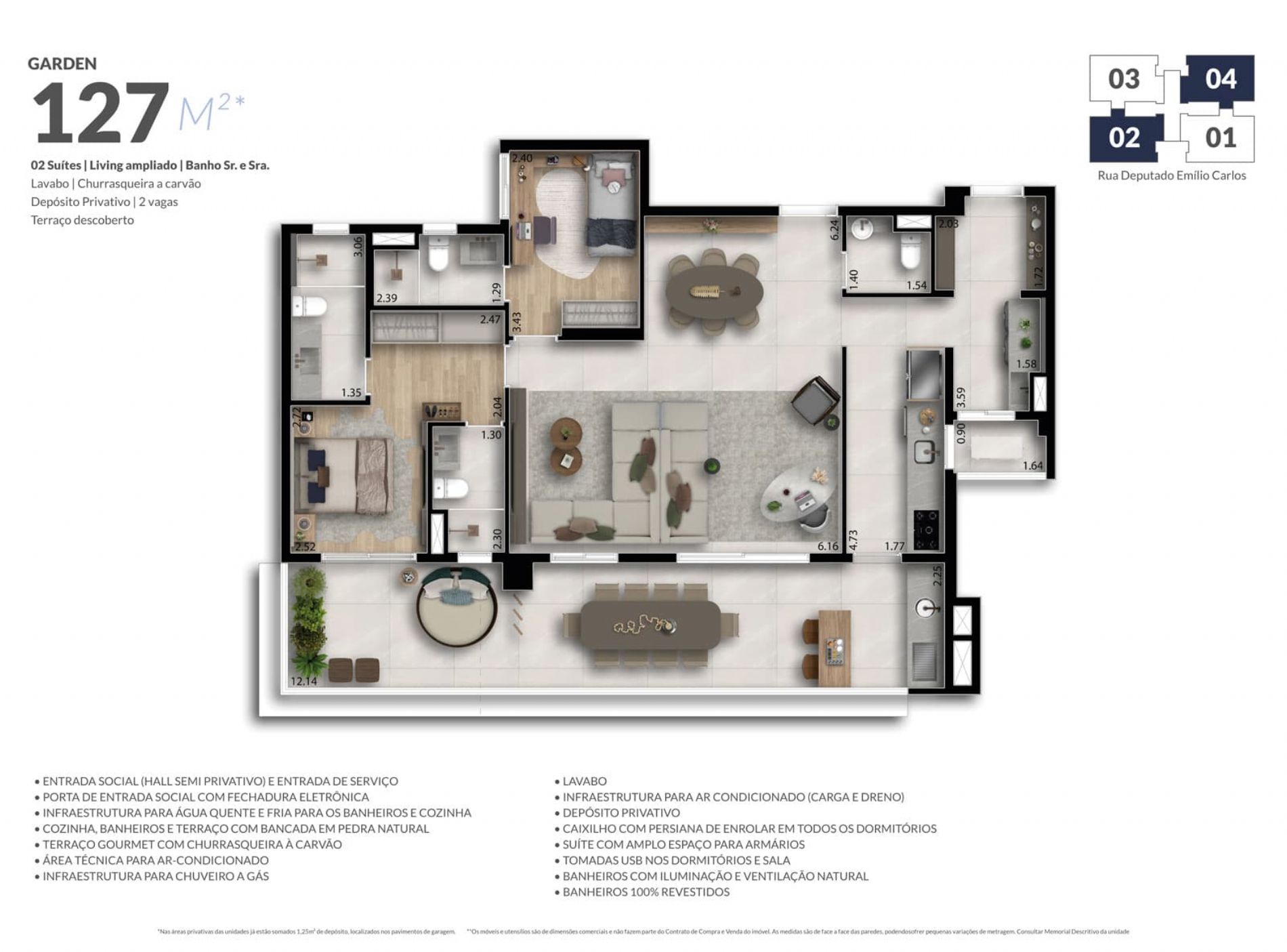 Tradição em construir com excelência e qualidade com Apts. de 117m², garden 127m² e duplex 232m²!