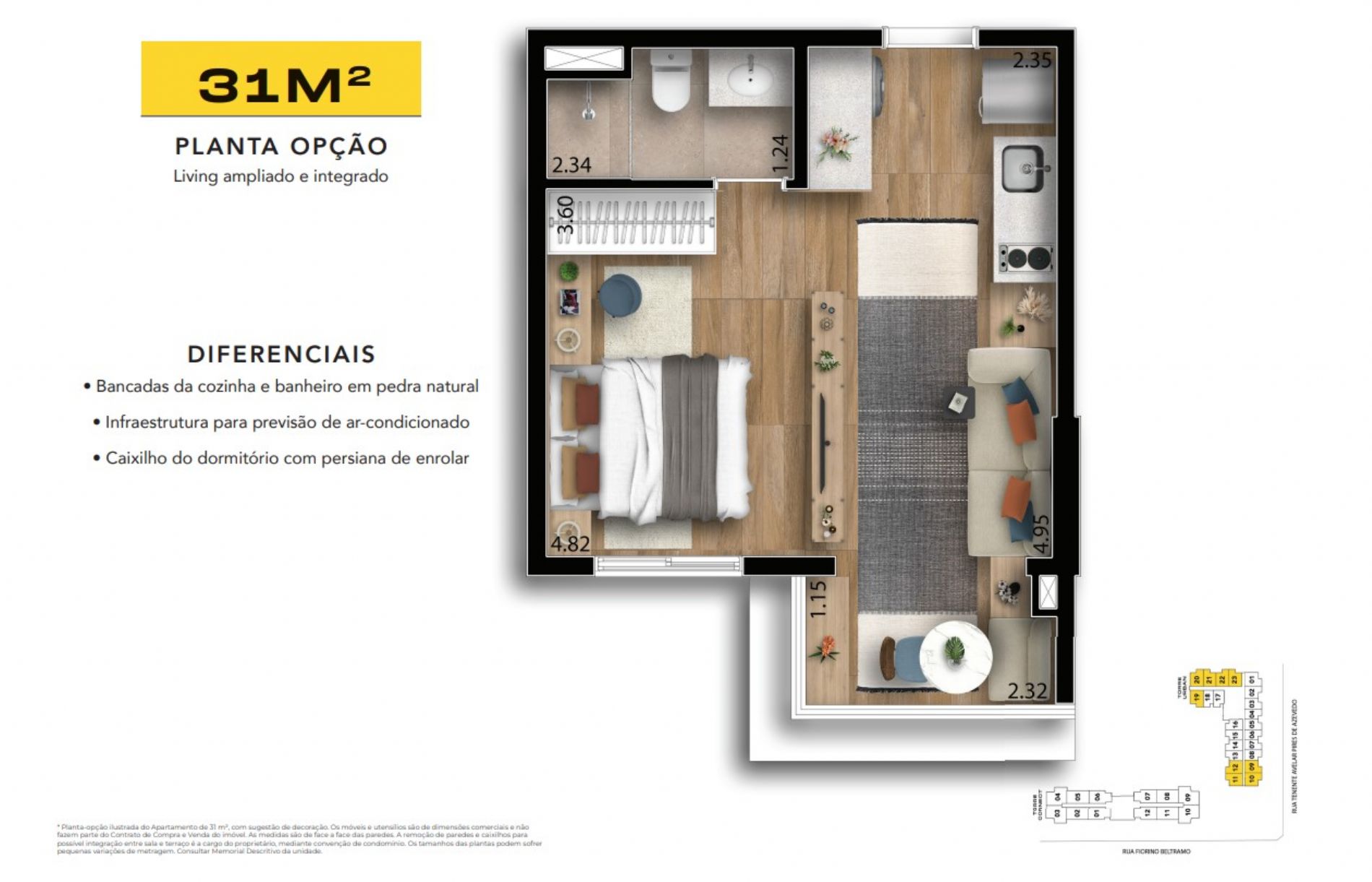 Detalhes: Apts 25m², 31m², 41m², 44m² e 50m², 1 e 2 dorms. 1 Suíte